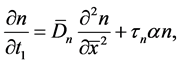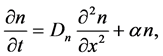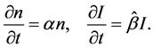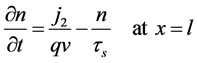 These equations describes distributions of the number of electrons and radiation in semiconductor. We assume that the number of electrons and holes is constant. The rise times