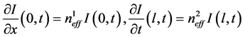 role plays the surface nonlinear refractive index. In ( [5] , Figure 1) has been mimicked two spectral modes of solitons when the mode-locked laser diode generate picosecond solitons. This generation will be described as a functional boundary conditions with feadback generated these solitons. As noted in [1] , “intense pulse of light may be used to create an effective flowing medium which mimics certain properties of black hole physics”. Of course, analogues models can be realized in very different physical systems.