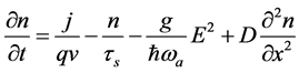 In semiconductor lasers, the intersection field matter is realized through the carrier density n which satisfies to the equation [3] :