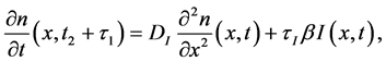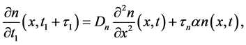 Now, instead of diffusion Equation (19) and Equation (20), we consider the diffusion equations with delay arguments: