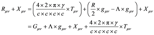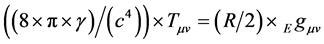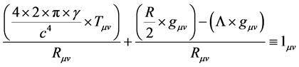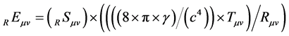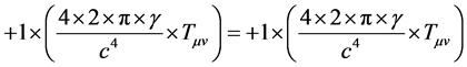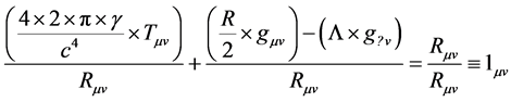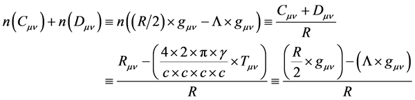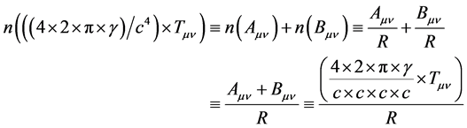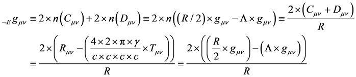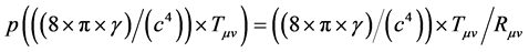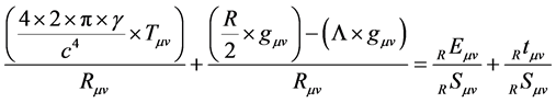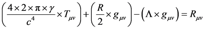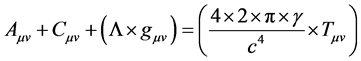 where γ is Newton’s gravitational “constant” [17] [18] , c is the speed of light in vacuum and π, sometimes referred to as “Archimedes” constant’, is the ratio of a circle’s circumference to its diameter. Due to Einstein’s general relativity, Einstein’s field equations are determined as