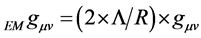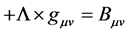 where F is the electromagnetic field tensor and gµv is the metric tensor of general relativity.