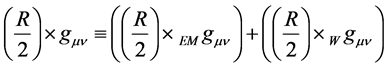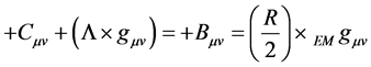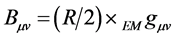 to assure that both gravitation and electromagnetism is geometrized simultaneously. Since everything is expressed in terms of curvature tensor, the electromagnetic field itself is completely geometrized from the beginning. By the following definition, the electromagnetic stress energy tensor, denoted as Bµv, appears as part of Einstein’s stress- energy tensor