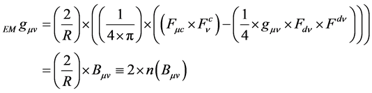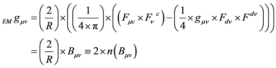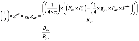 Under conditions of general relativity, where Aµv denotes the stress energy tensor of ordinary energy/matter, the stress-energy tensor of the electromagnetic field Bµv is an anti tensor [2] of ordinary energy/matter Aµv. Under conditions of general relativity, the second rank covariant stress-energy tensor of the electromagnetic field Bµv is determined by an anti-symmetric second-order tensor known as the electromagnetic field (Faraday) tensor F. In general, under conditions of general relativity, the second rank covariant stress-energy tensor of the electromagnetic field Bµv in the absence of “ordinary” matter, which itself is different from the electromagnetic field tensor F, can be derived many different ways. One form of this tensor is