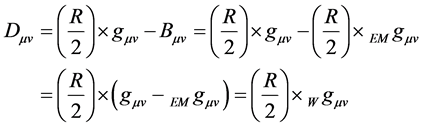 In particular, the physical content of the tensor Dµv is not clear at this moment. Still, a further lack of clarity may not stem from this fact. In order to express the physical content of the tensor Dµv it is necessary to distinguish clearly between the tensor Dµv and the tensor Bµv. To within acceptable margin of error, the information carried by the tensor Dµv is very different from the information as carried by the stress-energy tensor of the electro-magnetic field Bµv. In this context, the tensor Dµv is an anti-tensor of the stress-energy tensor of the electro-magnetic field Bµv. But, as noted above, there are some aspects connected with the tensor Dµv. In fact, the tensor Dµv is a sub-tensor of the metric tensor gµv of Einstein’s gravitational theory of curved spacetime. Thus far, the metric tensor Wgµv has to do something with the gravitational field. Moreover, it is possible and highly desirable that the metric tensor Wgµv is determined by fuctuations of gravitational fields and that the same tensor represents something like “ripples” in spacetime. The interaction between electromagnetic and gravitational waves and the transformation of one wave into another became already a principal focus of theoretical interest and inquiry and has been discussed [22] in literature. Under these assumptions, the tensor Dµv could be determined by the metric tensor of the gravitational waves. More precisely stated, it may be rather difficult to understand the significance that has to be accorded the tensor Dµv but the assumption that the tensor Dµv represents a fourth and until today unknown “force” does not make any sense so far. Despite Einstein’s intent to realize something like a unified field theory, there is considerable disagreement about the extent to which, if at all, such a theory is possible. And yet, from the epistemological standpoint, despite the long history of trials about a completely geometrical field theory of all fundamental interactions under conditions of Einstein’s gravitational theory of curved space-time, it is possible to go beyond general relativities’ definite’ advance in physical knowledge. Furthermore, besides of the influence of Einstein’s reduction of physics to geometry, geometry is nothing absolute but something relative. In fact, striving towards an extension of Einstein’s gravitational theory, we may append an unknown tensor Xµv to Einstein’s filed equations for this purpose. To be sure, the Einstein field equations (EFE) with the extra term Xµv may be written in the form