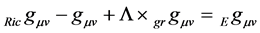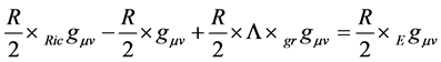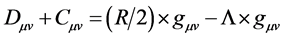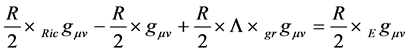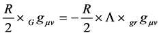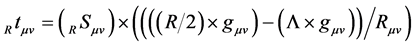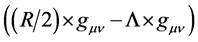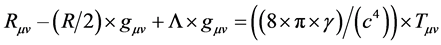 where Rµv is the Ricci curvature tensor (the trace of Rimanian curvature tensor), R is the scalar curvature, gµv is the metric tensor, Λ is the cosmological constant and Tµv is the stress-energy tensor. Rearranging equation we obtain