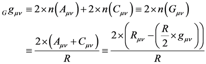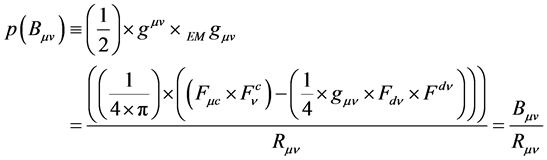 In general let n(Xµv) = Xµv/R where Xµv denotes a second rank co-variant tensor and R denotes the Ricci scalar, the contraction of the Ricci tensor as R = gµvRµv. Further, p(Xµv) = Xµv/Rµv denotes the probability tensor [2] of the tensor Xµv. The probability tensor p(Xµv) of a tensor Xµv is determined by the metric tensor as
