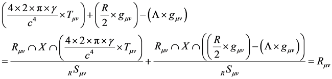 The value of X is determined equally as (RSµv/Rµv). The tensor of time