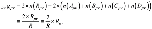 where R denotes the Ricci scalar and Xµv denotes a second rank (even a metric) tensor. Thus far, even a metric tensor can possess a metric. A straightforward consequence of this definition is the relationship between the metric tensor Xgµv and the probability tensor p(Xµv) as p(Xµv) Ç Ricgµv = Xgµv. Further, we define n(Xµv) as