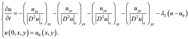 In image processing, the methods based on variation and PDEs play an important role. In recent years, many scholars have done a lot of research in this respect, and many good results have been achieved on image such as enhancing, sharping, and denoising images. See for instance [1] -[7] . The total variation minimization introduced by Rudin, Osher, and Fatemi [6] is the most significant of such methods. But now, one will consider the following more general functional