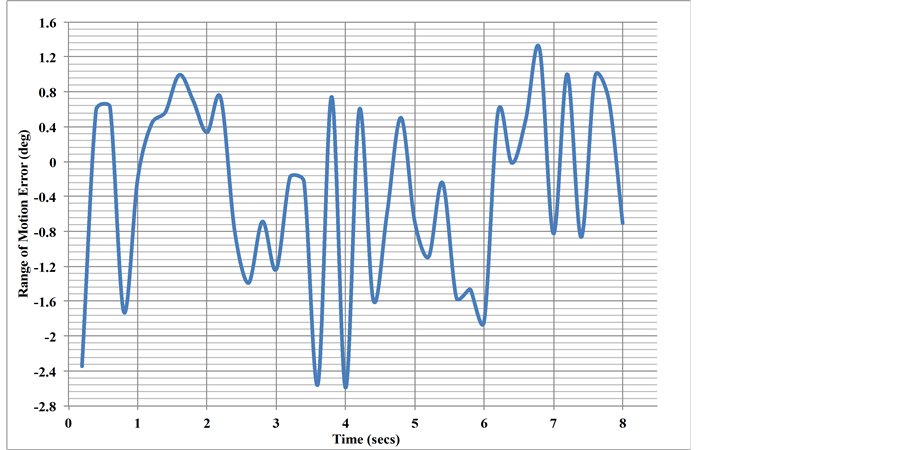 In Figure 16, the error in ROM measurement between using the HMCS and a Goniometer is shown. The error varies anywhere from −2.6˚ to +1.4˚ which is well within accepted error value of 5˚ [1] . This low value of error when compared with the Goniometer measurements indicates our technique of measuring the patient performance in near real-time can be used in clinical settings. Furthermore, our implementation on the GPU allows us to track all of the markers in a HD frame in 1.77 msecs making the HMCS capable of operating in real- time.