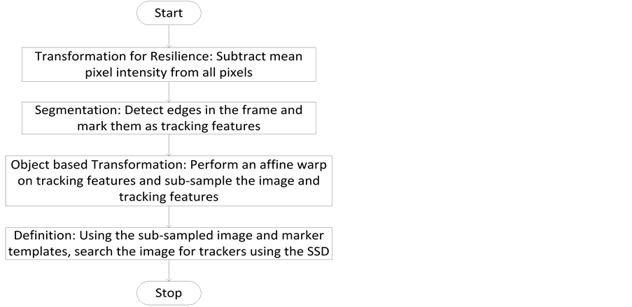 The first part of the transformation in Klein’s algorithm provides resilience. The approach here is to make the tracking more resilient not just to lighting changes, but also to the background of the image. An overview of the transformation phase is shown in Figure 6.