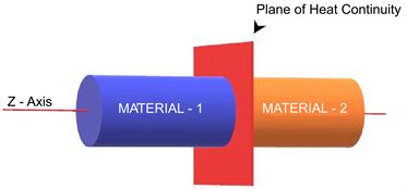 The plane of heat continuity is the plane along the radial axis of the solid composite cylinder (as shown in Figure 3(a)) where the material properties change i.e. where the two different materials are joined or merged together. So, the grid position in the above composite cylinder is as depicted in Figure 3(b).