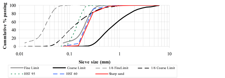 Three types of sand were used in this research. Ordinary building sand was used for tests involving full scale specimens while Congleton HST95 and HST60 silica sands were used for the model scale tests. In order to ensure the same sands were used throughout the study, all the sands were bought in one batch and of sufficient quantity to last the duration of the programme. The grading curves for the model sands and the ordinary building sand are shown in Figure 1, it shows that HST 60 sand and the building sand lie within the grading limits of the code, but nearer the fine limit. The building sand is just coarser than the HST 60 sand. While the other model sand, HST 95, has a grading that is finer than the fine limit set by the code. The grading of all the sands shows that they are within the limits set by BS EN 13139:2002 [5] for aggregates used in mortar.