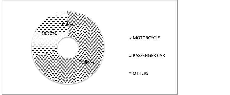 Road transportation is the most predominant form of transport in Akure metropolis. It accounts for about 98 percent of all travel in the town. The city of Akure was not planned ab-initio and as a result of this, there is minimal functional relationship between the various land uses. Its poorly developed road network and inefficient traffic management techniques often create chaotic traffic pattern [12] . The traffic composition in the city is mixed comprising of motorcycles, taxis, minibuses, Lorries and trucks (trailers). However, the traffic composition of Akure metropolis is dominated by taxis, motorcycles and buses [13] . The intersection under consideration in this study (Odole Intersection) is cross intersection linking OkeAro (a densely built up area) and Arakale (a commercial nucleus).