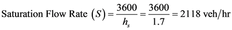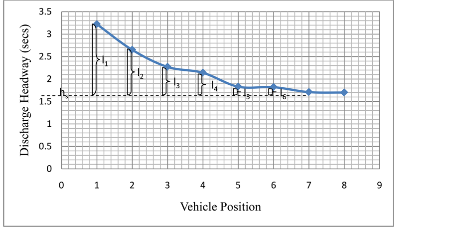 Table 4 and Figure 5 present the Summary of the results of discharge headway study carried out at Odole Intersection. The results reveal that the Saturation Headway (hs) at the intersection is about 1.7 seconds.