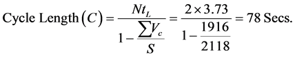 The mathematical relationships for thedetermination of cycle length and apportioning of green time are as given thus: