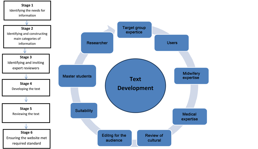 The project team responsible for the development of the information consisted of five persons. The first author (AA), a nurse-midwife with research area experiences of early miscarriage care. Supervise the two Midwife students (EA, EM) who were responsible for developing the first drafts of the text. This author developed and wrote the text with the first author. The fourth author (PGL), associated professor and gynecologist at OBGYN clinic and fourth author (PGL) Obstetrician and medicine doctor working with the target group daily read the fact text to be inconsistent with advice given. The last author (MB), a nurse-midwife and researcher specializing in diabetes care with many years’ experience in developing care and constructing patient information. MB interacted in the text development on a detailed level. Different ways in each area, which had to be taken into account when developing the information. The professional experts included clinical nurse-midwives, physicians. Language reviewers and editors were also included. The information developed gradually and was thoroughly evaluated in six stages. The development of the information itself occurred during the first five stages and the adjustment to the website in the last stage.
