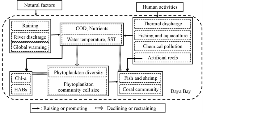 Figure 4. Concept of environmental factors that affect ecosystem of the Daya Bay.