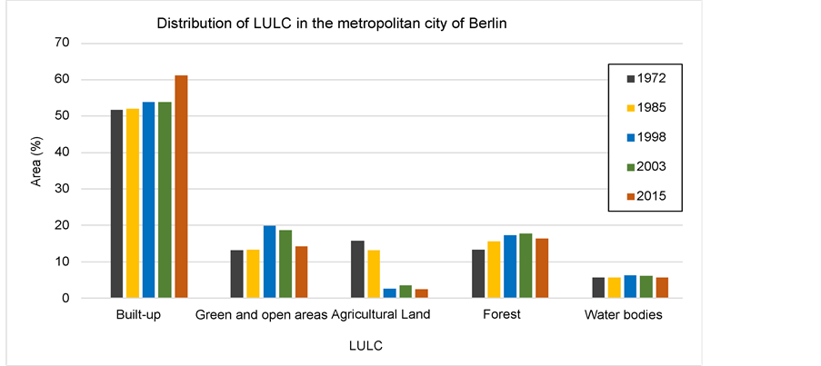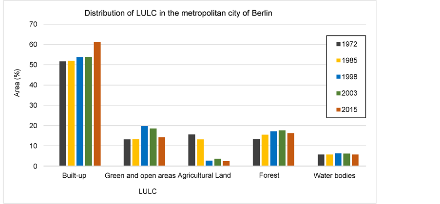 Figure 3. Distribution of LULC in the period of 1972-2015 in the metropolitan of Berlin.