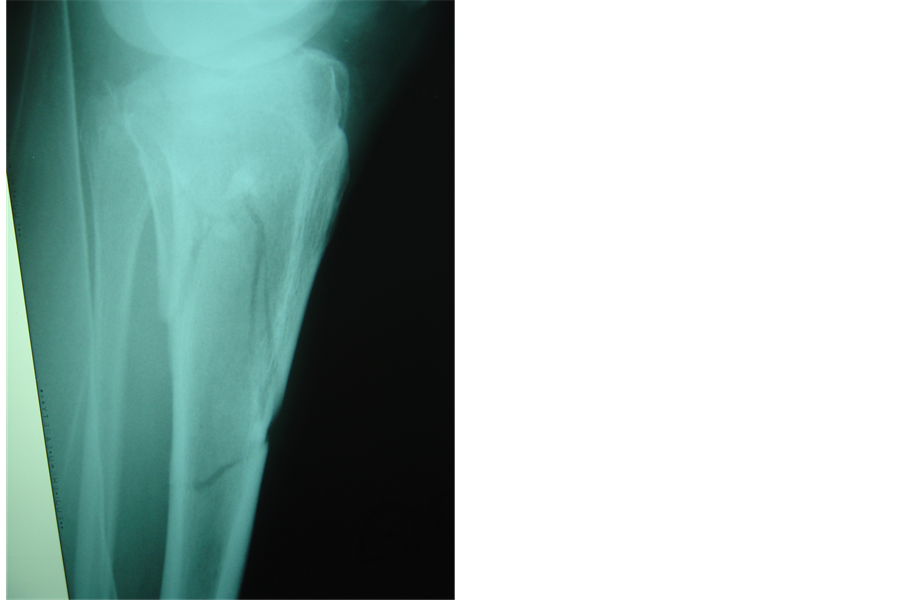 The study included patients from three different hospitals (two of the third level and one of the second level), and was approved by the hospitals. All patients were operated on by the same surgeon and all of them were investigated retrospectively. Mean surgical time was 75 minutes (1 - 2 hours). In all cases blood loss was minimal and no blood transfusion was required because of the tibial fracture. In the three cases treated with a plate, the skin healed uneventfully. In two cases of open fractures, final skin wound closure was delayed and performed safely on the fifth postoperative day. No serious infection was observed. There were two cases with superficial pin tract infections, treated with local debridement and oral antibiotics. Two peroneal nerve palsies due to original trauma recovered on their own between three and six months after the accident. After reduction and placement of the fixator, an intra-articular gap or step-off usually existed, that averaged four millimeters (between 0 and 6 mm). Alignment of the shaft was within 6 degrees of the neutral. The average duration to union was from in twelve to sixteen weeks. After removal of the external fixator, there was no late tibial angulation.