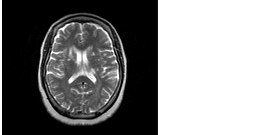 Figure 3. A 61-year-old female A 61 bilateral basal ganglia foci of CSF signal and anterior limb of the right internal capsule and adjacent part of caudate nucleus lesion of high T2 signal.