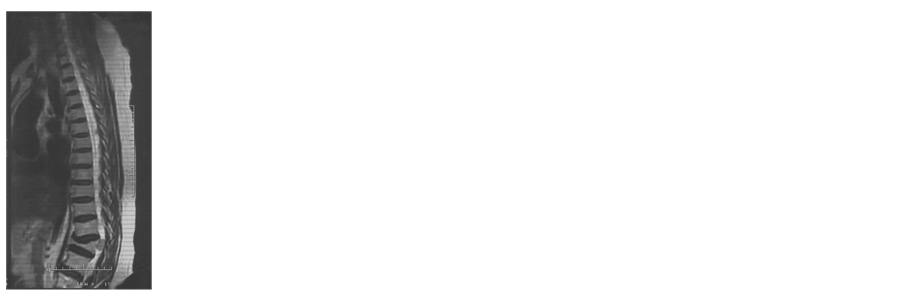 Meningiomas are slowly growing benign tumor commonly arising in the intracranial compartment more than the spinal canal [1] . They are located mostly intradural and generally respecting the pial layer of the spinal cord [2] . Spinal meningiomas are more commonly diagnosed in elderly patients, and lead to symptoms only after reaching a distinct size due to spinal cord compression [1] . With the advancement of neuroimaging investigation and microsurgical techniques, these tumors can be excised with low morbidity and mortality [1] [3] . Viral infections, exogenous or endogenous sex hormones, ionizing radiation and trauma may be associated with development of meningiomas [4] [5] . Posttraumatic intracranial meningiomas were reported before in several case reports and large series studies, while posttraumatic spinal meningiomas were extremely rare [6] [7] [8] [9] [10] . The author in this paper presents a case report of meningioma that developed at the site of previous spinal trauma with review of the literatures for similar cases.