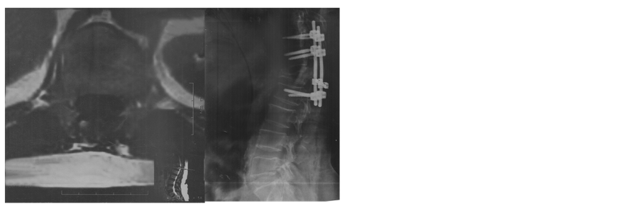 The primary goal of surgery is to achieve complete tumor resection and to avoid additional neurological damage [3] with the advancement of microsurgical procedures this goal can be achieved in majority of cases as in our patient with posttraumatic L1 meningioma. Additional posterior pedicular fusion was added to the standard microsurgical technique to avoid exacerbation of posttraumatic kyphosis after laminectomy.