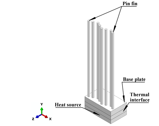 pin fin, i.e. the heat has the fast heat transferring rate from the heat source to the base of pin fins. It is very important for this fast heat transferring rate to protect the key element of electrical applications.