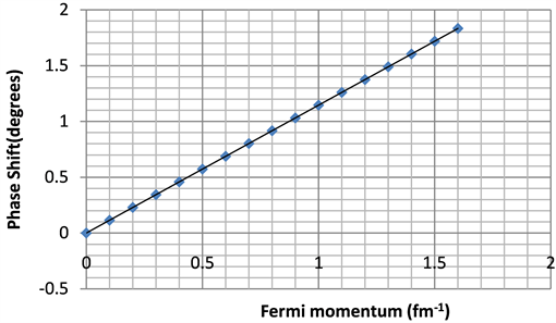 When the Fermi momentum of the interacting nucleons is zero, the value of phase shift , is equal to zero in the ground state as seen from Figure 2, this show that an increase in Fermi momentum leads to an increase in phase shift .