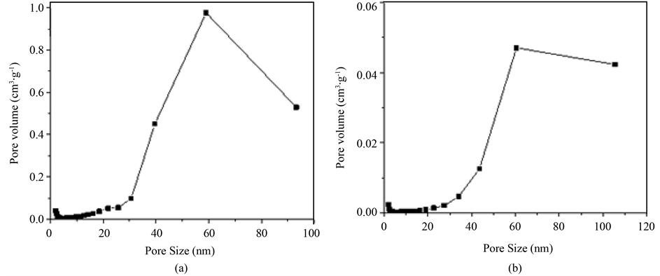 Figure 3. Pore size distribution calculated using the Broekhoff-de Boermethod for (a) MPS and (b) PEI-10k/MPS.