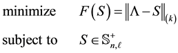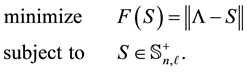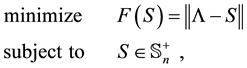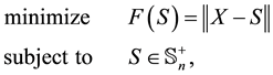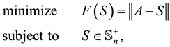 Therefore, when using the Frobenius norm, a solution of (1.3) provides a solution of (1.7). This observation is due to Higham [3] . A matrix that solves (1.7) or (1.3) is called “positive approximant”. Similarly, the term “low-rank positive approximant” refers to a matrix that solves (1.1).