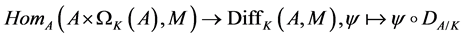 When A is a commutative algebra, with unit 1A over a commutative field K of characteristic zero, and when M is a A-module, a linear map