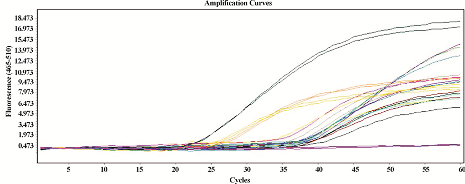 Real Time PCR is a variant of the conventional technique that combines amplification and detection of PCR products in one step by correlating the product in each one of the cycles with a fluorescence intensity signal. It allows for high specificity and ample range of detection as it is capable of quantifying and detecting concentrations of nucleic acids which could not be studied otherwise. It also makes it possible to obtain results faster as it requires no posterior electrophoreses; captures fluorescence in each cycle and generates amplification curves through the software of the equipment. These amplification curves possess four regions: base fluorescence (baseline or background), the exponential or logarithmic region, the linear phase and the termination or plateau. At the beginning of the logarithmic phase there is a cycle in which fluorescence stops being basal and becomes greater. This cycle is known as Cycle threshold (Ct) or Crossing point (Cp).