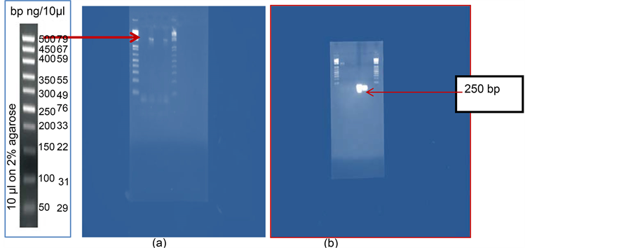 Specific primers were used, Eam1 (agcgtcgaccagcttgccaagtgccat) and Eam2 (agcgtcgaccagcttgccaagtgcca), to identify the chromosomal gene hrpN. This gene encodes a protein, Harpin, described in the literature as a component of the secretion of the third type and the major virulence factor E. amylovora [27] . 16Sr RNA genes of the bacteria Erwinia amylovora were identified using common primers: 27 fr and 1427 fr (Figure 2(a)) and the genes responsible for the pathogenicity were identified using the primers Eam1 and Eam2. The hrpN gene was amplified from E. amylovora strains from the Chy and Osh regions (Figure 2(b)).