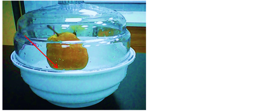 Figure 4. The appearance of milky white exudate on infected immature pear fruit.