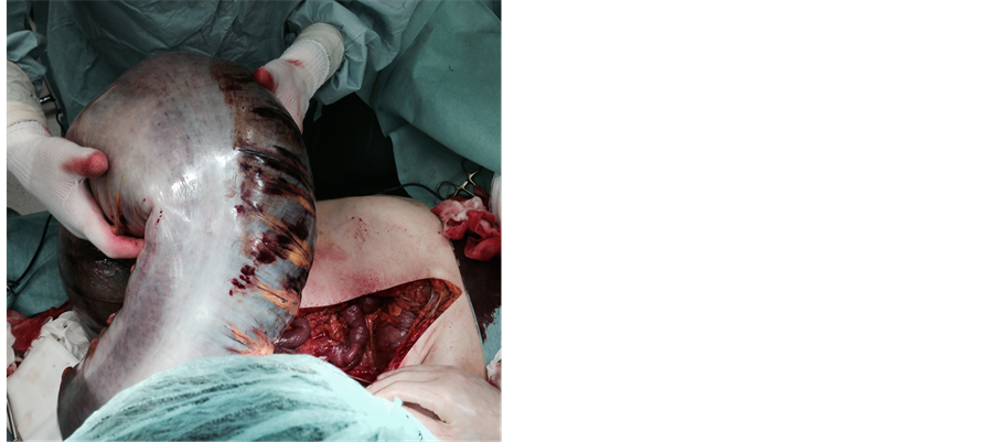 Surgical procedures consisted in a wide colosigmoid resection (Figure 5), drainages and terminal colostomy.