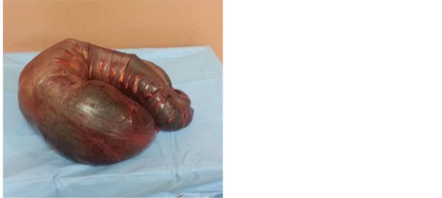 Figure 4. Intraoperative picture: sigmoid colon looks like an inner tube of a middle size car.