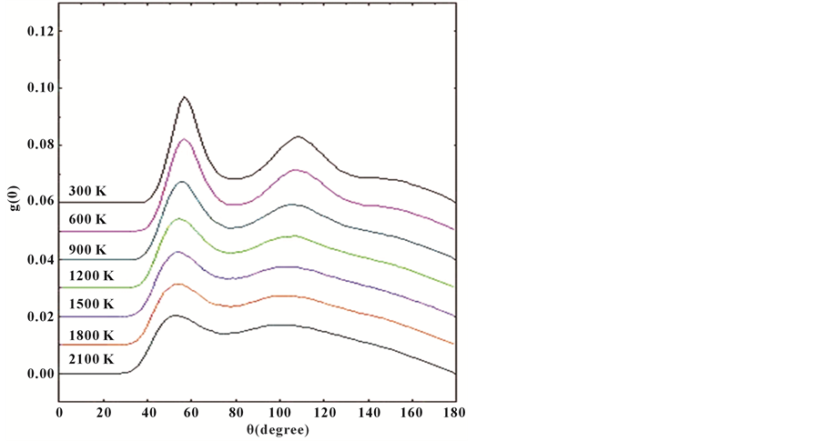 Figure 4. Bond-angle distribution function of Al30Co10 alloy at the different temperatures.