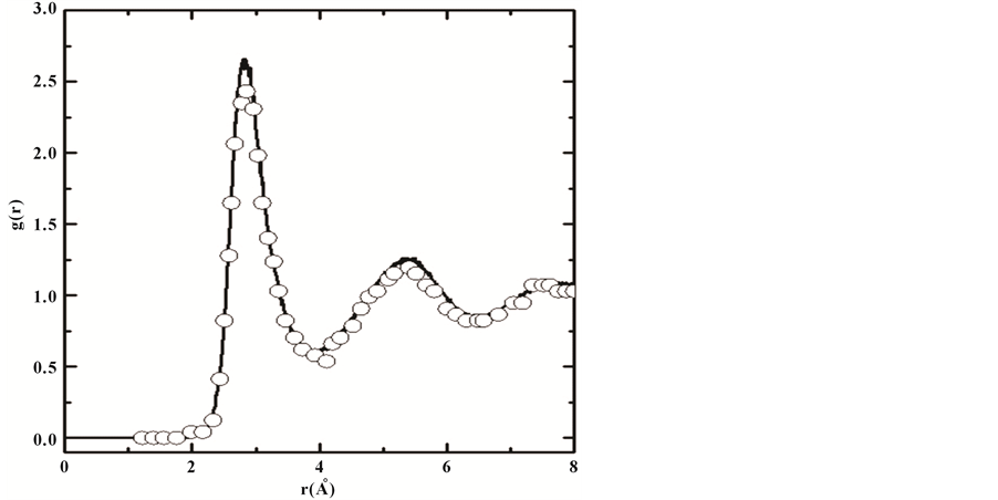 where ρ(r) the number of atoms around a central atom within the distance interval between r and r + dr, which is atomic average statistical distribution. By simulating the PDF of the liquid Al, we found that the PDF of the liquid Al are good agreement with the experimental data (Ref. 84) as shown in Figure 2; and calculating data represented by curve line and the circles represented experimental data.