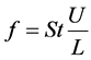 velocity. This prominent frequency region is considered to be aerodynamic sound radiated from the vortex systems behind the leading edge of the delta wings. Focuses are, therefore, put on the sound pressure level of the prominent frequency region. Since it is well known that human ear is the most sensitive in frequency band between 2000 to 4000 Hz, attention is paid to the prominent frequency band f from 2900 to 4000 Hz for the airflow velocity of 40 m/s. Generally speaking, the frequency f of shedding vortices from a bluff body is proportional to flow velocity U and inversely proportional to representative length of the body L, using Strouhal number St. The relationship is described as follows.