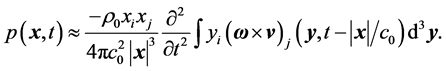 It therefore follows that since aerodynamic sound in the far field can be expressed as a function of the vorticity instead of the Reynolds stress, the vorticity plays a crucial role in generating aerodynamic sound. Equation (19) involves a double time rate of change. This implies that the vortices which change rapidly in time give great contributions to generating aerodynamic sound.
