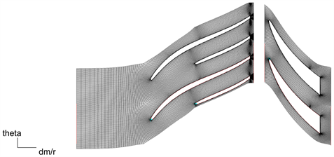 Figure 3. Blade to blade mesh for impeller and diffuser row.