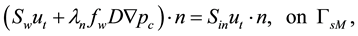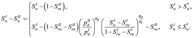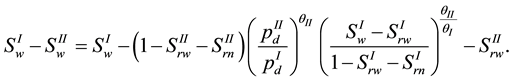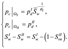 This point will be used to judge whether the nonwetting phase can or cannot penetrate the material interface. So the interface conditions can be rewritten in the form below. For capillary pressure,