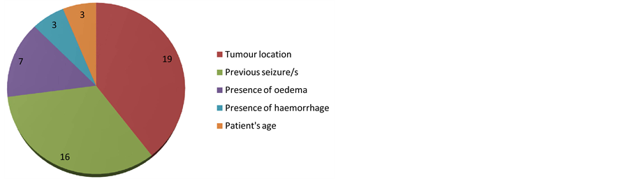 Figure 6. Pie chart demonstrating the factors that influence the decision to prescribe AEDs in patients with a newly diagnosed intrinsic brain tumour.