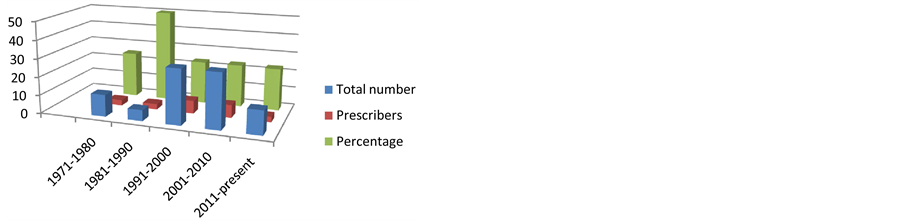 The data was entered into a Microsoft Excel® spreadsheet and tables/graphs were generated to analyse the information. The answer to question 1 was stratified to assess prescribing patterns based on country and state/ter- ritory of practice, as well as experience of the neurosurgeon (defined by decade of NSA admission).