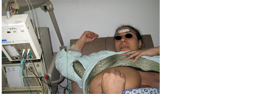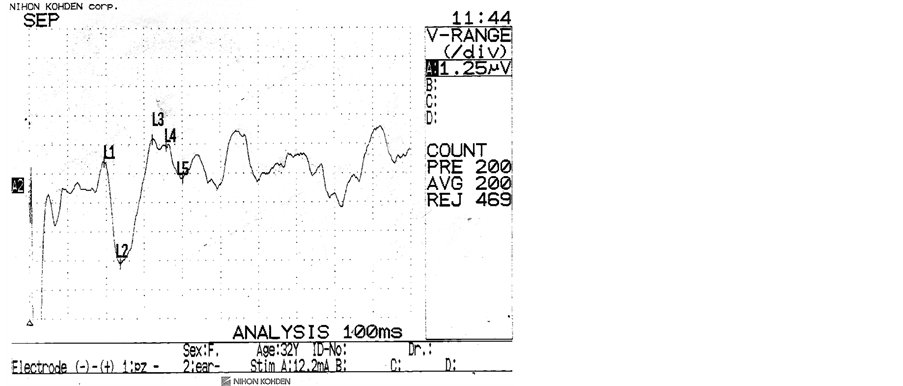 D-SEP examination was done with the patient lying supine in comfortable warm semidarkened room uing NIHON KOHDEN evoked response recorder model MEP-5200. The patients remain awake throughout the whole examination with eyes opened (Figure 2).