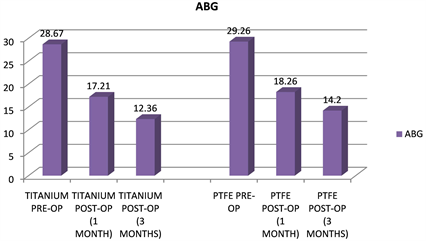 Table 4. Comparison of ABG post op 1 month & 3 months between PTFE and Titanium.