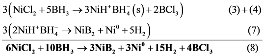 Scheme 2. Global reaction to obtain Ni and NiB from NiCl2 and BH3.