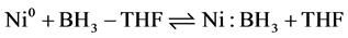BH3-THF stability was demonstrated by Hopps et al. [7] and Brown et al. [8] . The formation of metallic borides from reduction of metallic salts using as reducer agent BH3-THF is a complex process, which has not even been elucidated totally yet. In this contribution a mechanism to obtain nickel boride is presented. To analyze the possible reaction mechanism it is considered first that reducer complex (BH3-THF) interaction only happens with nickel salt and there is not reaction with solvent. This hypothesis was verified experimentally and there is not reaction between the methanol and BH3-THFcomplex.